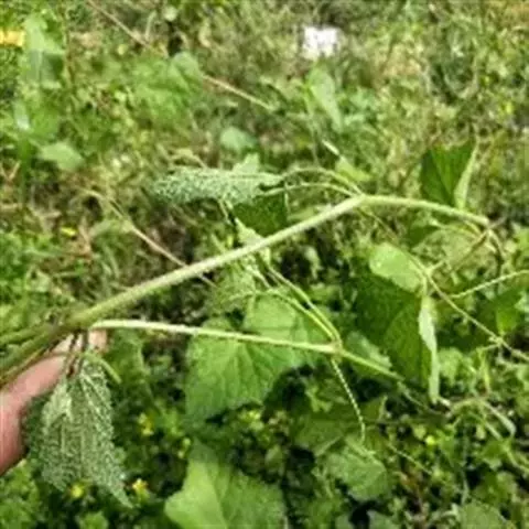 一年生草本,高1-2米;茎圆柱形,疏生散刺。叶掌状3-7裂,直径10-30厘米,裂片阔至狭,边缘具粗齿及凹缺,两面均被疏硬毛;叶柄长7-15厘米,被长硬毛;托叶线形,长7-10毫米,被疏硬毛。