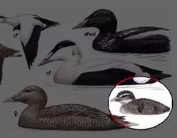 成鸟夏羽:头黑色,背和肩石板灰色,腰和尾灰褐色。翅上面石板灰色,初级飞羽和次级飞羽向端部渐呈灰黑色,外侧初级飞羽基部白色。下体黑色,肛周和尾下覆羽白色。成鸟冬羽:头顶和枕黑色,与耳羽到眼先的黑色相连。上体淡灰褐色,翅较成鸟夏羽更淡,尾灰色。额、颏、喉和后颈的窄环以及下体均为白色,胸两侧有灰黑色斑点。幼鸟:与成鸟冬羽相似,背和肩的灰褐色羽有黑色和皮黄色的边缘;腰深灰色。下体白色,胸两侧有灰褐色斑点。 虹膜黑色,嘴灰黑色,脚红褐色;幼鸟脚灰黑色,有时为肉色。