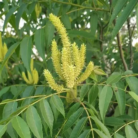 胡桃楸是胡桃科、胡桃属的乔木植物。株高可达20余米;茎皮灰色;叶椭圆形、长椭圆形、卵状椭圆形或长椭圆状披针形,具细锯齿,上面初疏被短柔毛,后仅中脉被毛,下面被平伏柔毛及星状毛;雄葇荑花序轴被短柔毛,雌穗状花序轴被茸毛;果序俯垂,果球形、卵圆形或椭圆状卵圆形,顶端尖,密被腺毛,果核棱间具不规则皱曲及凹穴,顶端具尖头;种仁较小;花期5月;果期8-9月。胡桃楸分布于中国黑龙江、吉林、辽宁、内蒙古、山西、河南、河北等省地,朝鲜、俄罗斯、日本等国家亦有分布。其喜温暖凉爽的生存环境,适宜在土层深厚、疏松肥沃、排水良好的黑垆土上栽培。一般繁殖方式为种子繁殖。胡桃楸具有止痛、敛肺定喘、温肾润肠、清热解毒等功效,可用于治疗胃痛、神经性皮炎、体质虚弱、肺虚咳嗽、肾虚腰痛、细菌性痢疾等症状。因其木材反张力小、不挠不裂,可作枪托、车轮、建筑等重要材料。