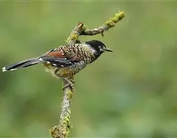 白领凤鹛是画眉科的一类动物。体长15-18厘米。头顶和羽冠土褐色,具白色眼圈,眼先黑色,枕白色,…