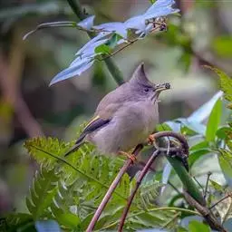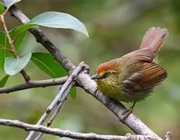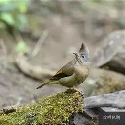 纹喉凤鹛:小型鸟类,体长13-16厘米。头顶和羽冠暗褐色或褐灰色,上体橄榄褐色,飞羽黑褐色,…