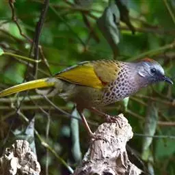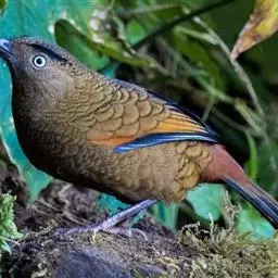 蓝翅噪鹛:噪鹛科、彩翼噪鹛属动物。中型鸟类,体长22-25厘米。上体棕橄榄褐色密被黑色鳞状斑,…