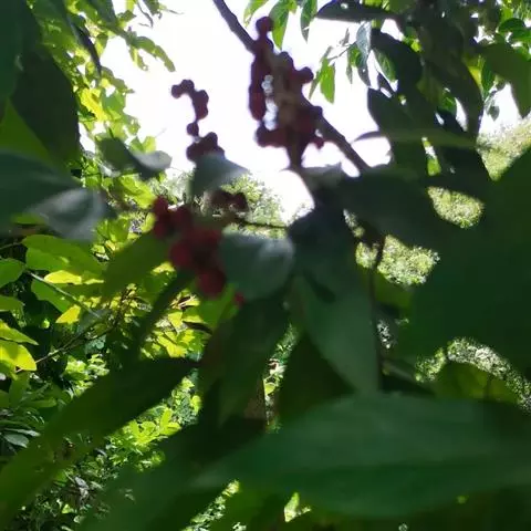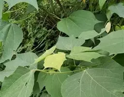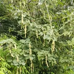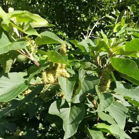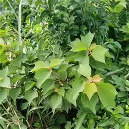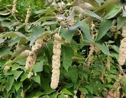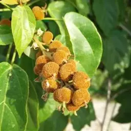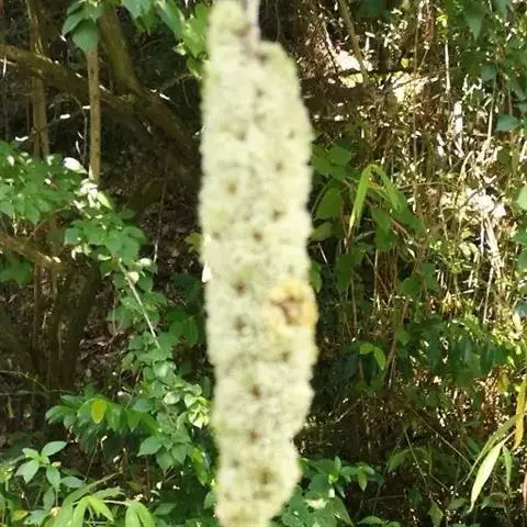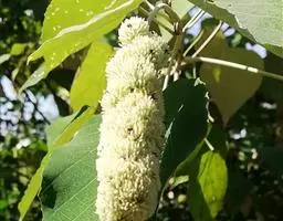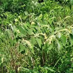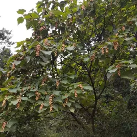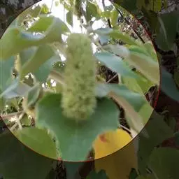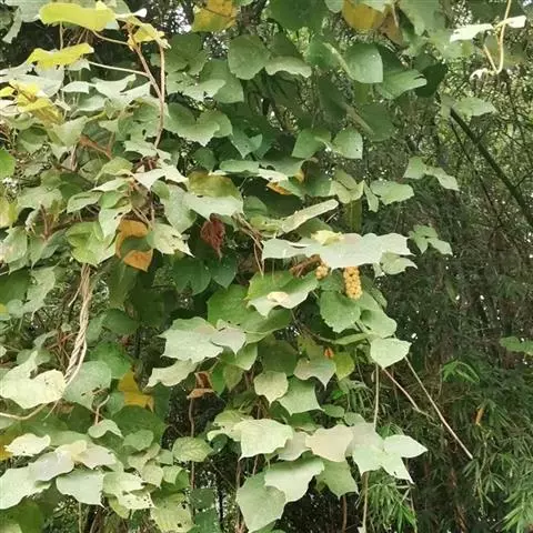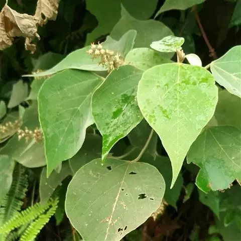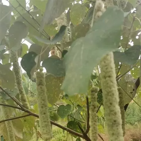 白楸叶 乔木或灌木,高3-15m;树皮灰褐色,近平滑;小枝、叶柄和花序均密被褐色或黄褐色星状绒毛。叶互生,生于花序下的常密集近轮生,卵形、卵状三角形或菱形,长5-15cm,宽3-10cm,顶端长渐尖,基部楔形或阔楔形,边近全缘或波状,上部有时具2裂片或粗齿;嫩叶两面均密被黄褐色或灰白色星状绒毛,成长叶上面无毛;基出脉5条,侧脉每边3-4条,第三级小脉横出,平行,基部近叶柄外有黑色腺体2个;叶柄稍盾状着生,长2-15cm。花雌雄异株,花序总状或下部具分枝,顶生;雄花序长10-20cm;苞叶卵状披针形,长约2mm,顶端渐尖;雄花在每苞片内2-6朵聚生;花蕾乱性或球形;花梗长约2mm;花萼裂片4-5,卵形,长2-2.5mm,外面密被星状 种子 毛;雄蕊50-60枚;雌花序长5-35cm雌花在每苞片内1-2朵;花梗长约1mm;花萼裂片4-5,长卵形,长2-3mm,不等大,外面密被星状绒毛;子房球形,被星状毛和皮刺,花柱3个,基部稍合生,柱头长2-3mm,背面羽毛状。蒴果扁球形,具钝三棱,直径10-15mm,密被褐色茸毛和皮刺,皮刺长4-6mm,被毛;种子近球形,深褐色,常有皱纹。花期:7-10月;果期:11-12月。