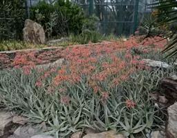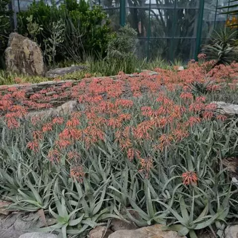 开普芦荟成株高度可达2-3米,通常不分枝。老叶枯萎后不会脱落,而是堆积在茎干上。幼株的叶刺相比成株更为显著。原产地植株生长在海拔1000米以上的多石山坡上。