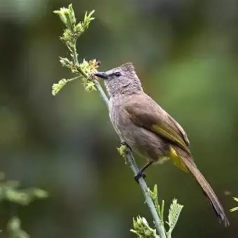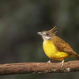 黄腹冠鹎:体长19-24厘米,是一种体型略大的褐色鹎。头顶橄榄褐色具黑褐色羽冠。白色的喉膨起,…