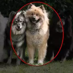 青灰色眼睛或眼睛内有色环。肉色鼻镜。上颚突出式咬和或下颚突出式咬和。任何区域带有黑色、红色、橘色、柠檬色、棕色、白色的狗。