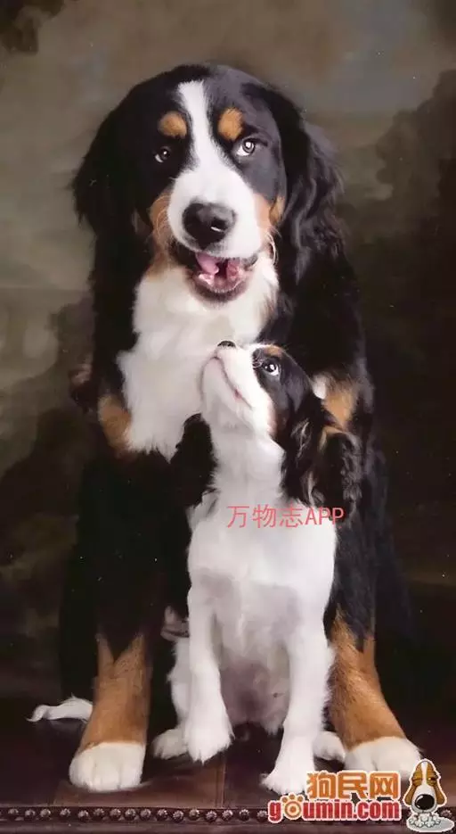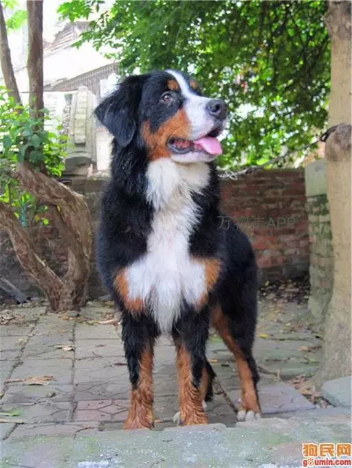 伯恩山犬,英文名BerneseMountainDog。属于大型犬,三色、长腿。坚定而和谐,很聪明、结实且灵活,在山区足以胜任象拖曳或驱赶畜群这样的工作,这也是这一品种的起源。公狗显得雄壮、母狗则显得柔和。原产地在欧洲,历史上曾经是牧羊人的最佳帮手,时过境迁,又成为受人喜爱的玩赏犬。初期在瑞士伯恩地区是以拉货,乳酪制造,织布店拉车而逐渐发展起来的品种。