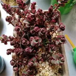 阿房宫是景天科属的植物,茎秆表面具有易剥落的木栓质表皮,黄色。叶肉质,簇生于分枝顶端,叶长5cm。花暗红色。可通过扦插与播种繁殖。养殖中,适当遮阴,春秋季节生长期需要适当的水,但夏季请断水,这是一个比较耐旱的品种。资料显示冬季需要维持在10℃以上,但也有抵抗低温的记录。