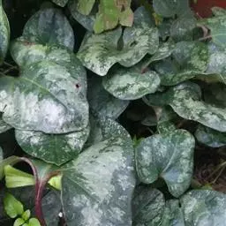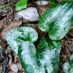 2、花叶尾花细辛,与尾花细辛相似,但叶面有白色点状或块状花斑。花期3月。