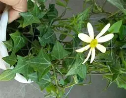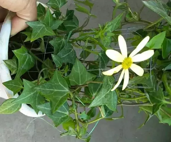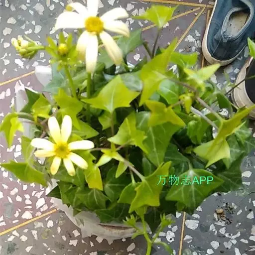 绿玉菊(Senecio macroglossus)为菊科千里光属多年生肉质植物。植株匍匐或悬垂、向上攀援生长,茎圆柱形,红褐色,叶互生,具叶柄,肉质,很脆,易折断,叶色深绿,有浅色的脉纹,小花乳白色,有黄心。绿玉菊原产非洲南部,喜温暖干燥和阳光充足的环境,耐干旱和半阴,怕积水,忌烈日暴晒。绿玉菊枝条婀娜飘逸,叶色翠绿质厚,是优美的室内观叶植物,适合作中小型盆栽摆放于柜顶、桌角,或作吊盆栽种,任其枝叶悬垂生长,具有很好的装饰效果。