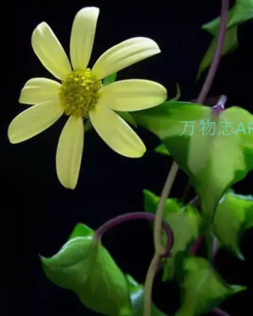 为菊科,千里光属多年生肉质植物,植株匍匐或悬垂、向上攀援生长,茎圆柱形,红褐色;叶互生,具叶柄,肉质,很脆,易折断,叶色深绿,有浅色的脉纹;小花乳白色,有黄心。 绿玉菊开花