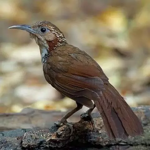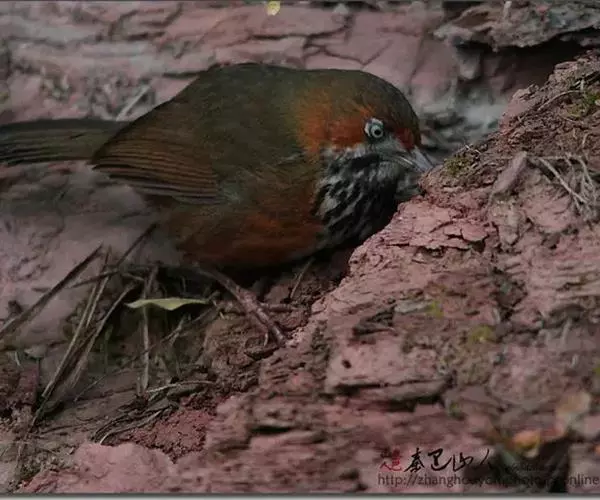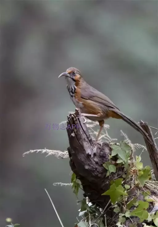 【特征描述】身体较长的红褐色钩嘴鹛。头顶及尾棕褐色,前额和脸颊锈红色,眼先白色,上体红褐色,颏喉灰白色,前胸具黑色点斑连成的纵纹,下腹及两胁灰色。似斑胸钩嘴鹛,但下体为灰色,两胁少染棕色。虹膜淡黄白色,喙粉褐色,脚角质褐色。 【生态习性】多单独或集小群活动于中低海拔山地森林中,也见于丘陵灌丛草丛和园林中,隐匿而怯人,常能听到其翻捡落叶的声音。过去作为斑胸钩嘴鹛Pomatorhinus erythrocnemis甚至是锈脸钩嘴鹛 Pomatorhinus erythrogenys的亚种,现多数观点认为其为独立种。 【分布】中国鸟类特有种,分布于安徽、湖南、江西、浙江、福建以及广东、广西等省区 。