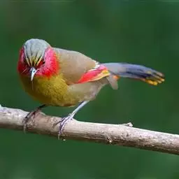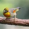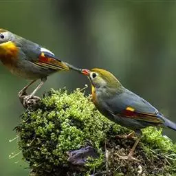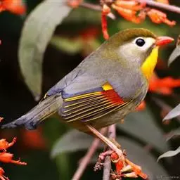 银耳相思鸟小型鸟类,体长14~18厘米。头顶黑色,耳羽银灰色,前额橙黄色;外侧飞羽橙黄色,基部朱红色,…