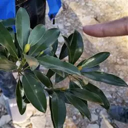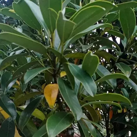 叶不整齐互生,在顶端3-6片近轮生或松散簇生,革质,厚革质,倒卵状椭圆形,倒披针形或椭圆形,长5-15厘米,宽2-5厘米,先端骤尖或短渐尖,基部渐狭或楔形;在阳光下可见密布透明油点;中脉在叶上面稍凹下,在下面隆起;叶柄长8-20毫米。