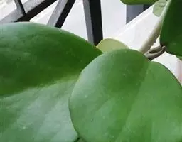 叶膜质,卵状心形,长5-12厘米,宽4-7厘米,顶端短渐尖,基部心形,叶耳圆,长1-2厘米,两叶耳展开或紧接,叶面绿色,叶背粉绿色,两面无毛,或幼时被微毛,老时被毛脱落;侧脉每边10-12条,在叶背略明显;叶柄长,长3-6厘米,顶端具丛生腺体。