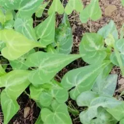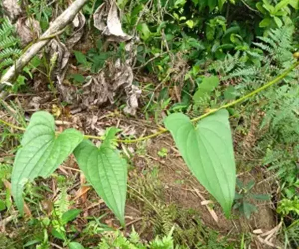 第二种山药:为无性繁殖,茎圆柱形,叶片心形,无花,叶腋间着生“山药豆”,秋冬茎叶枯萎后“山药豆”落地,第二年开春发芽。