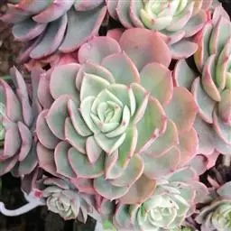 大和锦是景天科拟石莲花属的多肉植物。肉质叶排成紧密的莲座状,广卵形至散三角卵形,背面突起呈龙骨状,…