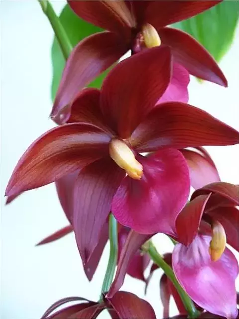带唇兰:假鳞茎暗紫色,圆柱形,罕为卵状圆锥形,被膜质鞘,顶生1枚叶。叶狭长圆形或椭圆状披针形。…