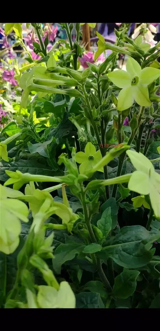 花烟草又叫烟草花,由于植株紧凑,连续开花,是优美的花坛、花境材料,广泛用作盆景、庭院、草坪绿化植物。