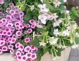 花烟草上盆必须及时,否则会引起根系的严重盘结和植株老化。为保证生长的顺利,基质尽量保证透水透气、保肥,土壤pH值为5.5-5.8,在生产中,可采用pH值6.0的混合基质。这一阶段的土壤温度很重要,对于刚移植的种苗,白天温度为18℃-21℃,晚间温度应在16℃-18℃。温度过低会引起白化苗,温度剧升会引起叶片灼伤,严重时会导致部分种苗死亡。移苗后的第一次浇水必须浇透,否则会影响成苗率及后期盆花生长的整齐度。花烟草的育苗阶段很关键,其后期生长也很重要。生长期简单分为两个阶段: 第一阶段:营养生长阶段,这一阶段主要为花烟草分枝的旺盛期和植株的形成期,条件的好坏直接影响后期的生长。保持基质见干见湿,以促使根系正常生长;这阶段对肥料的需求很大,为促进其营养生长,浇水与施肥交替进行,20-10-20与15-0-15缓释肥150-200ppm交替使用。充足的肥料供给和光照条件是这一阶段的关键。较好的条件下20-25天营养体完全形成,且有少量花形成但未达到应用效果。 第二阶段:生殖生长阶段,这一阶段主要是为了促进花的大量形成,以达到应用效果。这阶段除仍保持基质见干见湿外,光照与肥料的调节仍是关键。为促进花量增加,此阶段需施以P、K肥为主的肥料,可将10-30-20和20-10-20缓释肥交替施用,浓度为150ppm每周一至二次。9月至翌年2月上市产品在施肥的同时必须延长光照时数,生产上达不到10小时可采用光间断来促进开花。