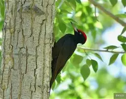白腹黑啄木鸟,是啄木鸟科、黑啄木鸟属的中型鸟类,体长43-46厘米,头顶具长的红色羽冠,颚纹亦为红色,…