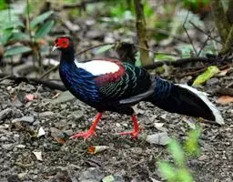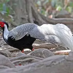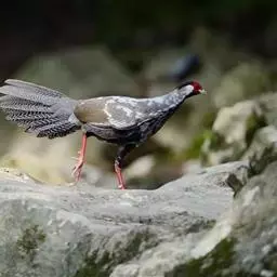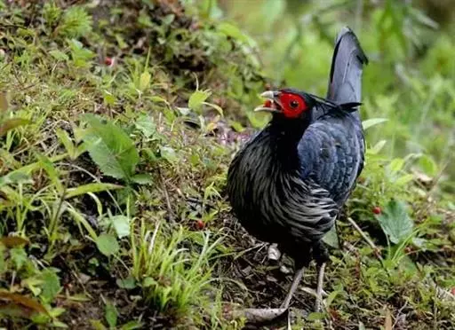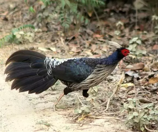 黑鹇(学名:Lophura leucomelanos),大型鸡类,体长56-60厘米。雄鸟上体呈黑褐色,背羽具有黑紫色金属光泽。头顶有黑色羽冠。脸部裸皮呈红色,并散生有稀疏的黑色纤羽。尾部长而侧扁,中央两对尾羽呈红褐色,其余为黑褐色。下体多为暗褐色。胸羽呈披针形,各羽羽干为白色,并杂有淡灰色。嘴为黄褐色,基部稍黑。脚和爪为灰色或铅褐色。雌鸟体羽为棕褐色,并杂有不规则的黑褐色斑。