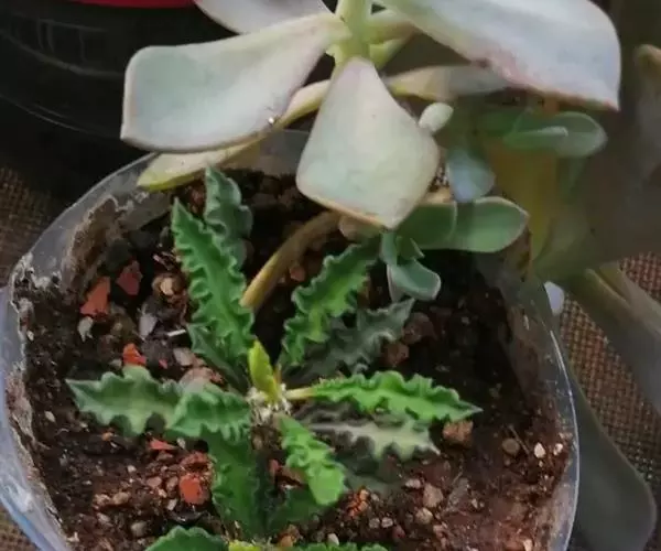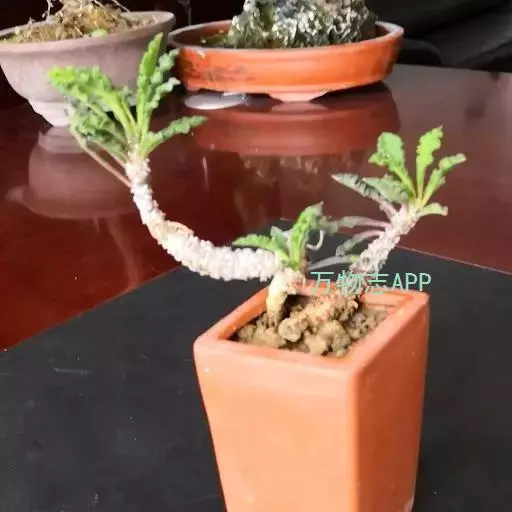 皱叶麒麟因叶子充满起伏的皱褶而得名,是一种充满野趣的小型多肉植物,其株形小巧玲珑,根茎虬曲多姿,皱巴巴的叶子簇生于枝头。除单独盆栽观赏,还是制作盆景小品。