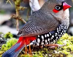 斑胸草雀,又名金山珍珠,是雀形目梅花雀科的小型鸟类。该鸟全长10厘米左右,胸和尾羽有黑白斑纹,雄鸟…