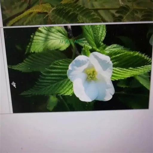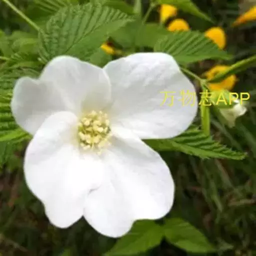 单花顶生于新梢上;花直径3-5厘米;萼片大,卵状椭圆形,顶端急尖,边缘有锐锯齿,外面被稀疏绢状柔毛,副萼片细小,狭带形,比萼片短4-5倍;花瓣白色,倒卵形,比萼片长1/4-1/3倍。