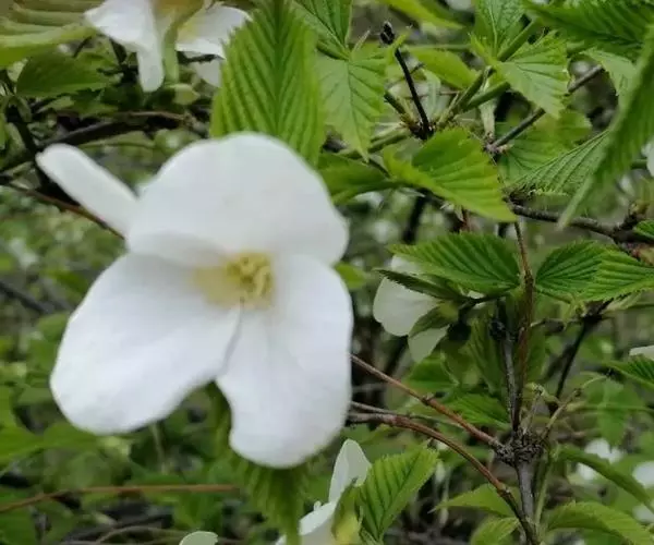 鸡麻(学名:Rhodotypos scandens (Thunb.) Makino)是蔷薇科鸡麻属植物,落叶灌木,高0.5-2米,稀达3米。小枝紫褐色,嫩枝绿色,光滑。叶对生,卵形,长 4-11厘米,宽3-6厘米;萼片大,卵状椭圆形。花期4-5月。果期6-9月。