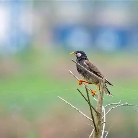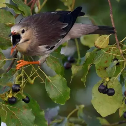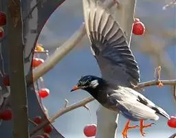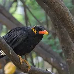 黑冠椋鸟:中等体型的椋鸟,体长21厘米。雄鸟前头为黑色并具金属光泽;头顶、颈项和羽冠亦为黑色;翅及翅上覆羽黑色;尾羽褐色,具白色端斑;上体灰色;下体淡黄褐色。雌鸟形态与雄鸟相似,但羽冠较雄鸟为短。虹膜蓝白或乳黄色;嘴峰铅绿色;跗蹠及爪柠檬黄色。头具黑色羽冠,与其他椋鸟易于区别。主要栖息于开阔落叶阔叶林和灌木林中以及多营巢于树洞中或其他洞穴内。属群鸟共栖。常4-8只结小群活动。鸣声清脆响亮。食物有果实和浆果,偶食花蜜和小型昆虫。分布于印度、中国云南耿马。常见于印度城镇、村庄及铁路沿线。偶见于中国云南西南部和西藏东南部。
