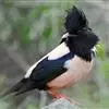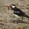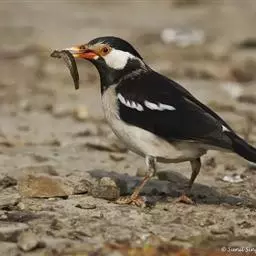 斑椋鸟:是中等体型的黑白色椋鸟,体长24厘米。头顶、头侧、翼斑、腰及腹部白色,喉、胸及上体余部黑色,…