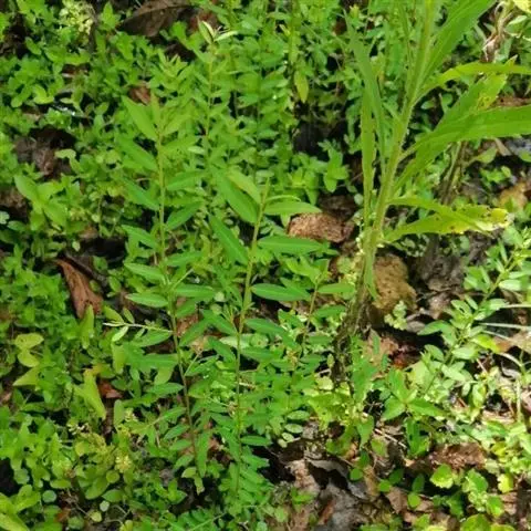 落叶灌木,高2-4cm。枝无毛,小枝细弱。叶互生,具短柄;叶片椭圆形至长圆形,长2-3cm,宽1.4-2cm,先端具小尖头,基部宽楔形或圆形,全缘。花簇生于叶腋;单性,雌雄同株;无花瓣;雄花数朵至10余朵簇生,萼片5-6;雌花通常1朵,生于雄花丛中,子房3室,柱头3。浆果球形,直径6-8mm,紫黑色,具宿存花柱;果柄长4-5mm。花期4-7月,果期7-10月。