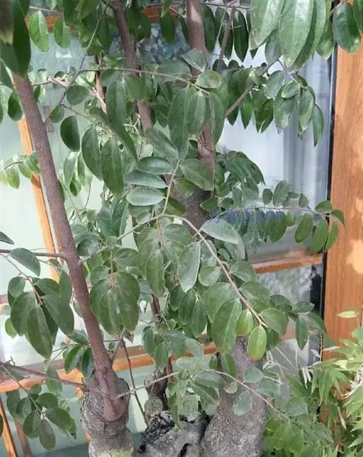 小叶3-5片,一般为椭圆或卵形,长9-15cm,花黄色或带黄色条纹,花期为11-12月,果呈园形,果期4-5月。
