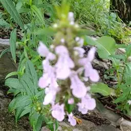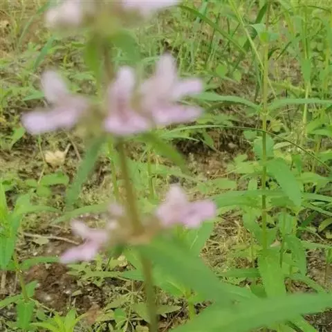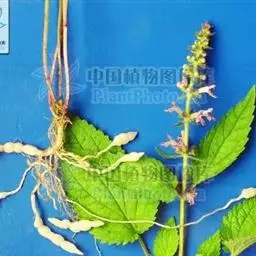 多年生草本,根状茎匍匐,其上密集须根及在顶端有串珠状肥大块茎的横走小根状茎。茎高30-60cm,四棱形,在棱及节上有硬毛。叶对生,卵形或椭圆长卵形式形,长3-10cm,宽1.5-6cm,两面被贴生短硬毛。轮伞花序常6朵花,多数远离,排列成5-15cm顶生假穗状花序。小苞片条形,花萼狭钟形。花冠二唇形,粉红色至紫红色。小坚果卵球形。