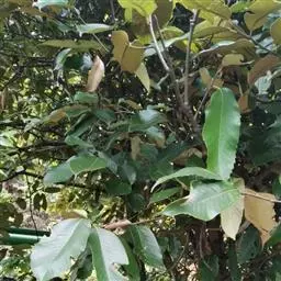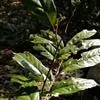 托叶宽卵形, 宽达7毫米,顶端略钝,有多数的纵细脉,常较迟脱落。叶革质,长椭圆形或长圆形,或兼有倒披针状长椭圆形,长9-18厘米,宽3-6厘米,顶端急尖,或甚短尖,稀圆形,基部心形或浅耳垂状,少有圆形,全缘,很少在顶部叶缘有甚浅裂的1-3个细裂齿或浅波浪状,中脉在叶面明显凹陷,侧脉每边14-18条,稀较少,在叶面裂缝状凹陷,网状叶脉明显或纤细,叶背红棕色(嫩叶),棕灰色或灰白色(成长叶);叶柄粗而短,长2-5毫米。