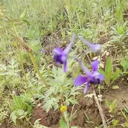 该种与高翠雀花的主要区别是轴及花梗有弯曲和近直展的柔毛,以及黄色短腺毛;苞片线形;花梗向上斜展,长1-1.5厘米;小苞片与花邻接,披针形或披针状线形,长5-10毫米,宽0.7-1毫米,有白色疏柔毛和黄色短腺毛。产新疆阿尔泰山。生海拔1890-2100米间山地一草坡。