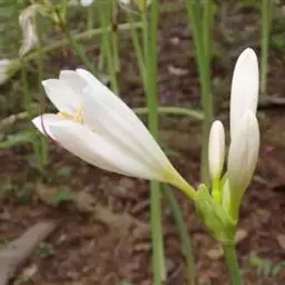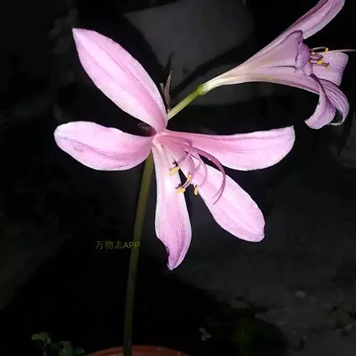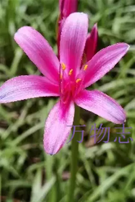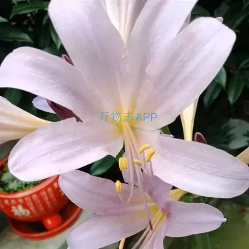 长筒石蒜草本,地生。鳞茎卵球形;叶披针形;伞形花序,有花5-7朵,花白色;花被裂片腹面稍有淡红色条纹,…