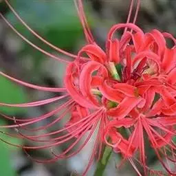 石蒜 Herb.):鳞茎近球形。秋季出叶,叶狭带状,顶端钝,深绿色,中间有粉绿色带;花茎高约30厘…