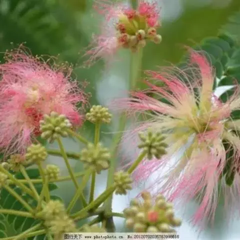 山槐叶形雅致,盛夏绒花红树,色泽艳丽,可作为庭荫树,或丛植成风景林。