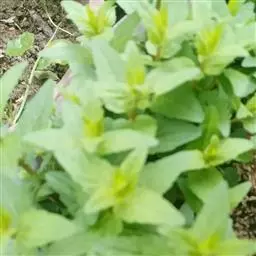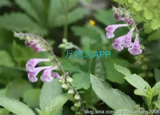 叶草质,卵圆形或三角状卵圆形,长1.4-4.7厘米,宽1.2-3.5厘米,先端锐尖至钝,有时圆形,基部截形,截状楔形至近圆形,边缘具浅而钝的2-10对牙齿,两面疏被伏贴的小柔毛,下面以沿各脉上较密,侧脉3-4对,斜上升,与中脉在上面不明显下面突出;叶柄长(0.3)0.5-2厘米,疏被上曲的小柔毛。