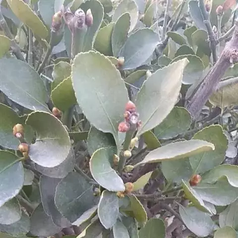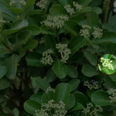 常绿灌木或小乔木,高达8米。 叶光亮革质,倒卵形或窄长椭圆形,长3-6厘米,宽2-3厘米。 聚伞花…