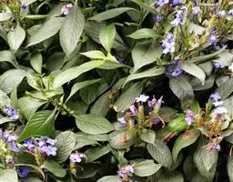 多年生草本,外倾,叶具叶柄,椭圆形,基部急尖,钝,圆或近心形,几全缘,长3-12厘米,宽1-4(-6)厘米,两面稀疏被短毛,上面钟乳体点状,总状花序顶生,花序轴4棱,棱上被毛,较明显,花偏向一侧。苞片对生,三角形,长5毫米,疏被短毛;小苞片2,似苞片,着生于花梗基部,长2毫米;花梗约长3毫米,无毛;花萼长7毫米,5深裂,仅基部结合,裂片披针形,线形,长5-6毫米,被腺毛。
