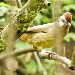 白颊噪鹛是雀形目噪鹛科噪鹛属鸟类,又称土画眉、小画眉、小噪鹃。成鸟额至头顶栗褐色,…