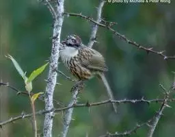 矛纹草鹛是噪眉科、草鹛属中型鸟类,体长25-29厘米。头顶和上体暗栗褐色具灰色或棕白色羽缘。…