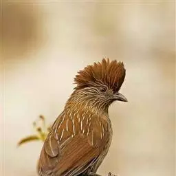 条纹噪鹛是画眉科、噪鹛属中型鸟类,体长28-32厘米。头具短的羽冠,上体栗褐色,飞羽外翻蓝灰色。…