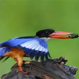 翠鸟属是佛法僧目翠鸟科中的一属。自额至枕蓝黑色,密杂以翠蓝横斑;背部辉翠蓝色,…