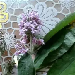花:圆锥状或穗状聚伞花序顶生或腋生;苞片和小苞片稀少,线状披针形,长达4毫米,被星状短绒毛;花梗极短;花萼外面和花冠外面均被星状短绒毛和腺毛;花萼钟状,长3-5毫米,内面无毛,花萼裂片卵形,长约1.5毫米,宽约1毫米;花冠高脚碟状,淡紫色,近喉部白色,芳香,花冠管长9-12毫米,外面毛被有时脱落,内面中部以上被星状毛,花冠裂片近圆形或阔倒卵形,长和宽2.5-4毫米,内面无毛而通常被有鳞片;雄蕊着生于花冠管内壁中部或稍上一些,花丝极短,花药长圆形,长1.5-1.7毫米,基部心形;子房卵形,长约1.5毫米,被星状柔毛,花柱长1.5-2.5毫米,基部被星状柔毛,柱头棍棒状,顶端浅2裂。