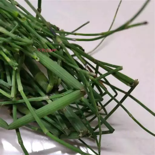 药用为木贼科植物木贼的全草,木贼味甘、苦,性平。归肺、肝经,具有疏散风热、明目退翳、止血的功效。木贼夏季采收,除去杂质,晒干或阴干贮藏,药用炮制: 除去枯茎及残根,喷淋清水,稍润,切段,干燥。切断段。