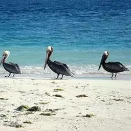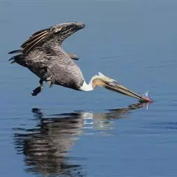褐鹈鹕:是鹈鹕家族中体型最小的成员。体型粗大,体重6.5-9千克。嘴形宽大直长,上嘴尖端朝下弯曲,…